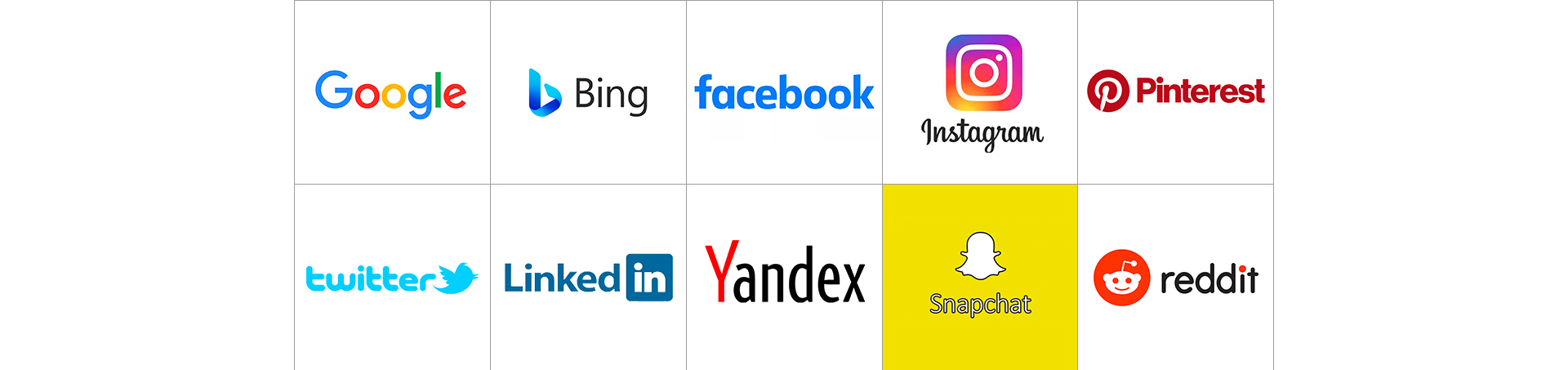 Google,Bing,Facebook TikTok,Yandex,LinkedIn等